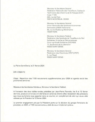 En parallèle, un courrier précisant la répartition des recrutements supplémentaires pour 2024, incluant +100 conducteurs pour Voyageurs, et l’agenda social des prochaines semaines a été transmis par la Direction le 21 février 2024 !