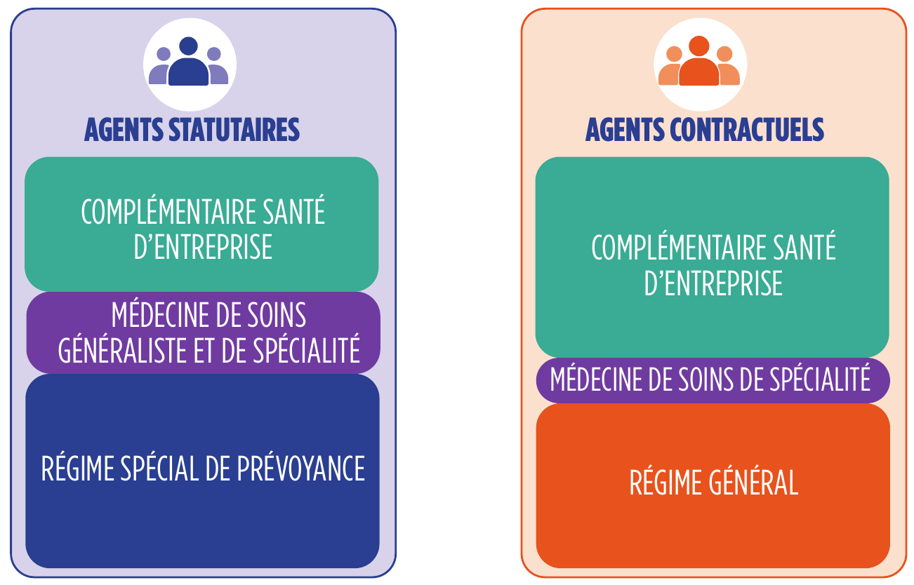 le premier en lien avec le régime de remboursement des frais de santé, qui s’appliquera aux agents statutaires et contractuels et entérine la mise en oeuvre d’une complémentaire santé pour tous,