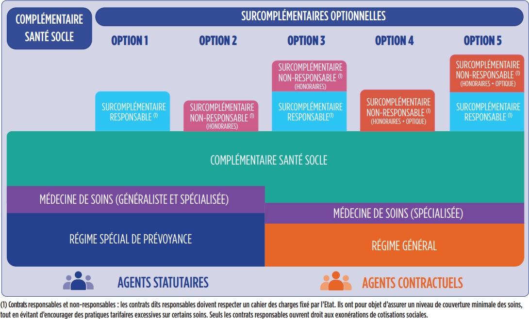 - Les régimes surcomplémentaires sont optionnels et entièrement à la charge de l’agent.