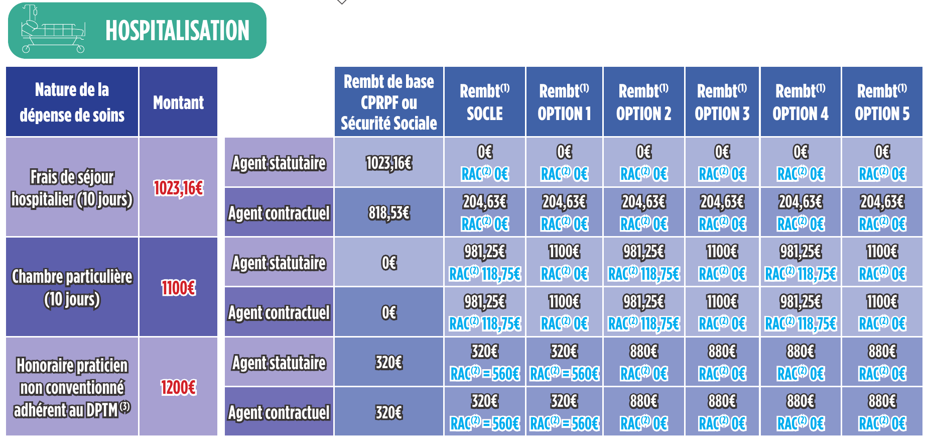 (2) RAC : Reste à charge