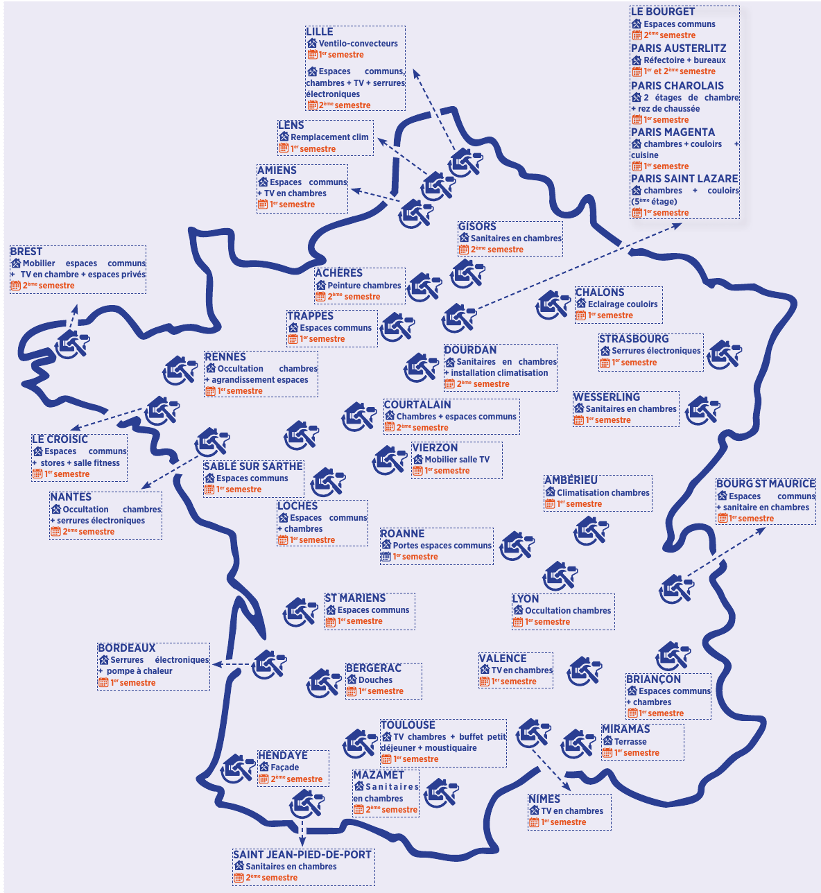 - Une nouvelle formule de petit-déjeuner, incluant des nouveaux produits et une offre diversifiée, a été testée sur 6 résidences (Amiens, Bordeaux, Chambéry, Lyon, Lille et Metz) avant un déploiement plus large.